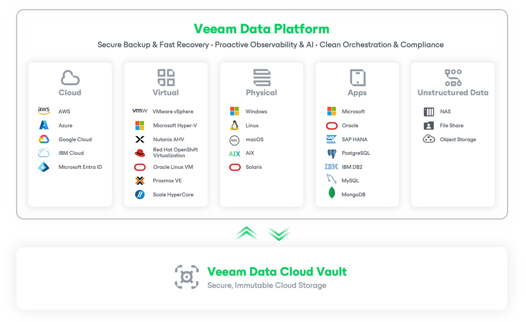Add immutability with native AWS, Azure, Google Cloud backup plus Veeam Data Cloud Vault.